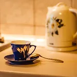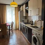 Eine Küche mit einer Mikrowelle, einer Kaffee-/Teemaschine und Küchenutensilien gehört zur Ausstattung der Unterkunft für Selbstversorger. Für einen bequemen und entspannenden Aufenthalt in diesem Apartment stehen den Gästen Ausstattung zur Kaffee- & Teezubereitung zur Verfügung. Das Restaurant A la Minute serviert europäische Gerichte und liegt nur 6 Gehminuten vom Apartment entfernt. Die nächstgelegene Bushaltestelle Zalizniaka befindet sich nur wenige Gehminuten entfernt von dieser Unterkunft. Diese Unterkunft bietet Zugang zu einem Patio und den Gärten sowie einer sonnigen Terrasse mit Blick auf den Garten.